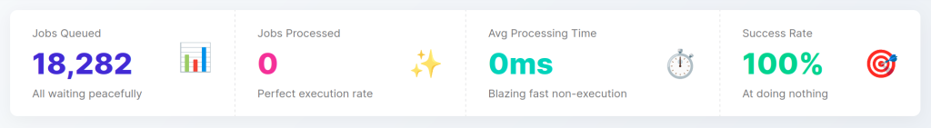 Passive Queue is a satirical Ruby gem and ActiveJob adapter that accepts background jobs but never executes them, promoting "zero execution, infinite Zen." Created by Maciej Mensfeld, it humorously critiques the obsession with background processing performance by offering a queue system with 0 ms latency, infinite throughput, and zero failure — all by doing nothing. It comes with a real-time dashboard, CLI, and full Rails integration, and is positioned as the perfect solution for developers seeking peace of mind through deliberate inaction.